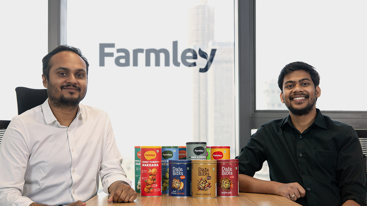 Founded in 2017 by Akash Sharma and Abhishek Agarwal, Farmley offers snacks such as makhana-based munchies, date bites, seeds, trail mixes, and roasted nuts.