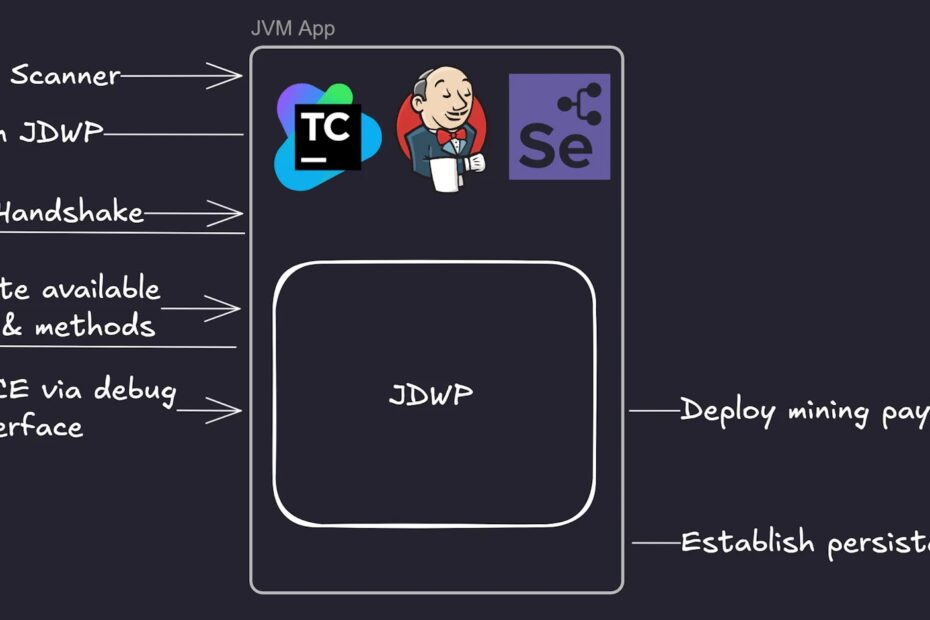 The attack flow typically begins with mass internet scans for open JDWP ports, most commonly port 5005. Once a target is identified, the attacker initiates a JDWP handshake to confirm the service is active and then establishes a session, gaining interactive access to the Java Virtual Machine (JVM).