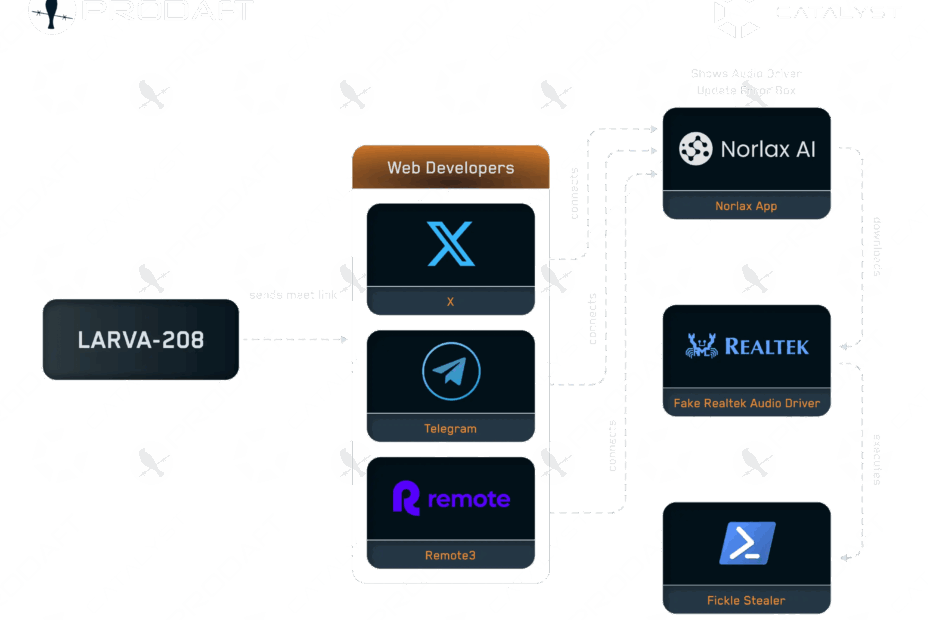 The threat actor LARVA-208, previously known for targeting IT staff through phone-based social engineering, has pivoted to focus on blockchain developers using a meticulously crafted fake AI workspace platform.