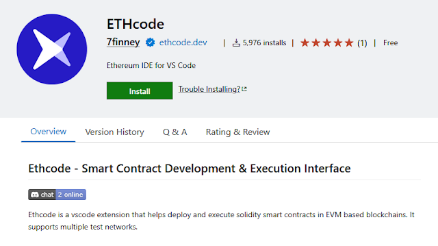 ETHcode, developed by 7finney organization, is a legitimate VS Code extension with nearly 6,000 user installations that enables Ethereum developers to test, debug, and deploy smart contracts across EVM-based blockchains.