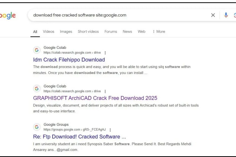 The infection chain typically begins when users search for cracked applications using queries such as “download free cracked software site:google.com,” leading them to compromised Google-hosted sites that ultimately deliver the malware payload.